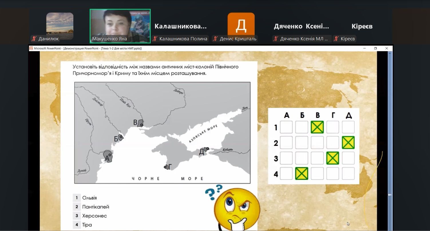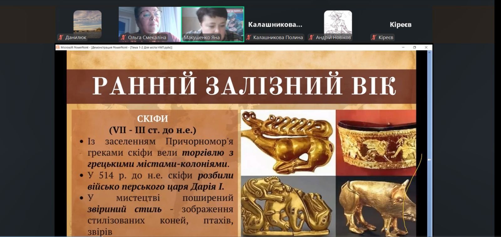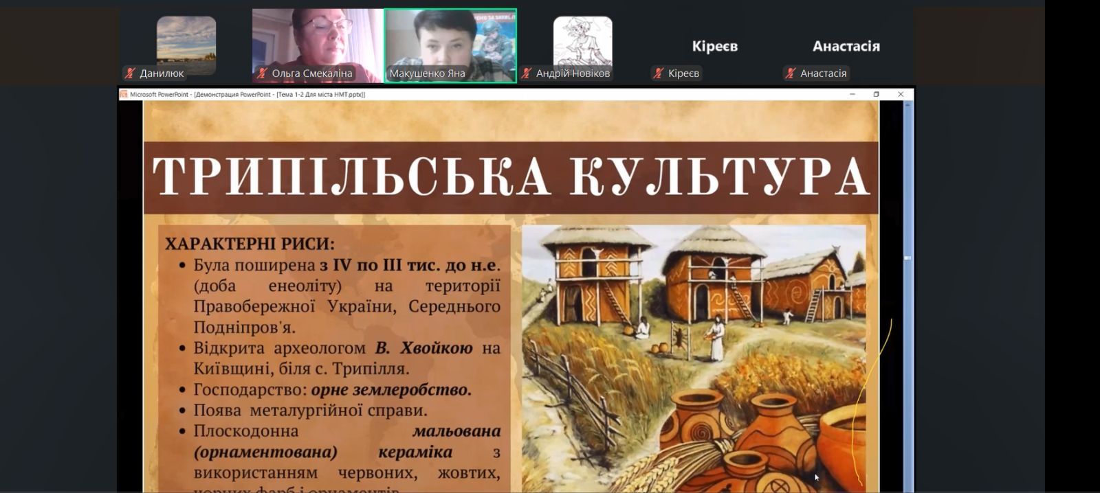З темами 1,2 «Вступ до історії України», «Стародавня історія України» учасників ознайомила вчителька МГ№ 13 Макушенко Я.О. Під час консультації учні ознайомилися з фактичним матеріалом і змогли перевірити знання завданнями ЗНО/НМТ попередніх років.
