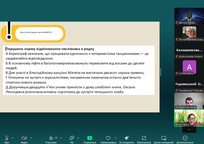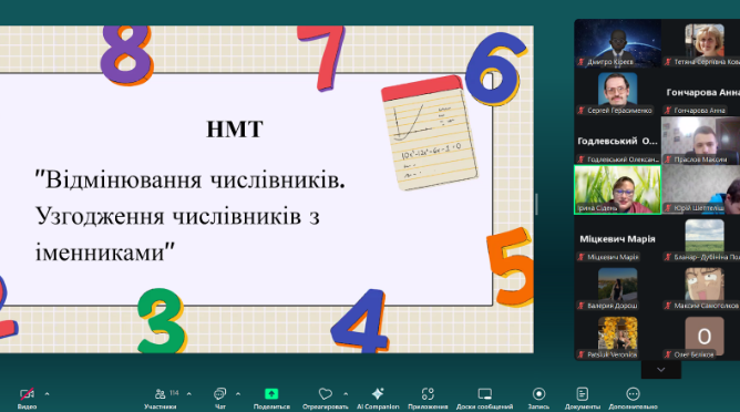 Під час зустрічі учасники мали можливість розібрати складні випадки узгодження числівників з іменниками, виконати практичні завдання у форматі тестів НМТ та отримати поради, як уникати типових помилок. Заняття пройшло в доброзичливій атмосфері, а матеріал був викладений доступно та системно.