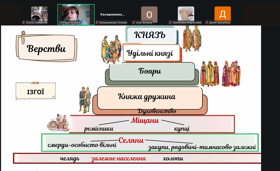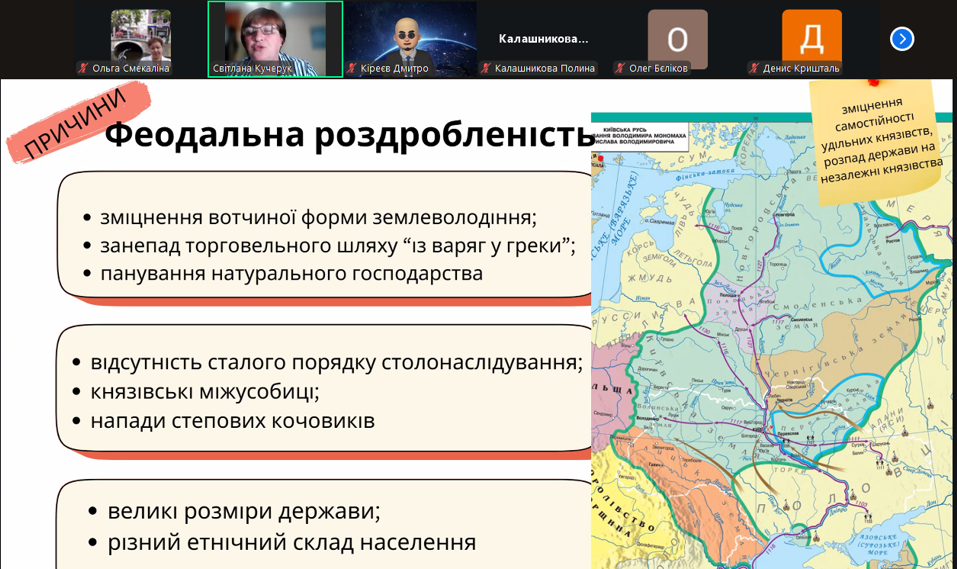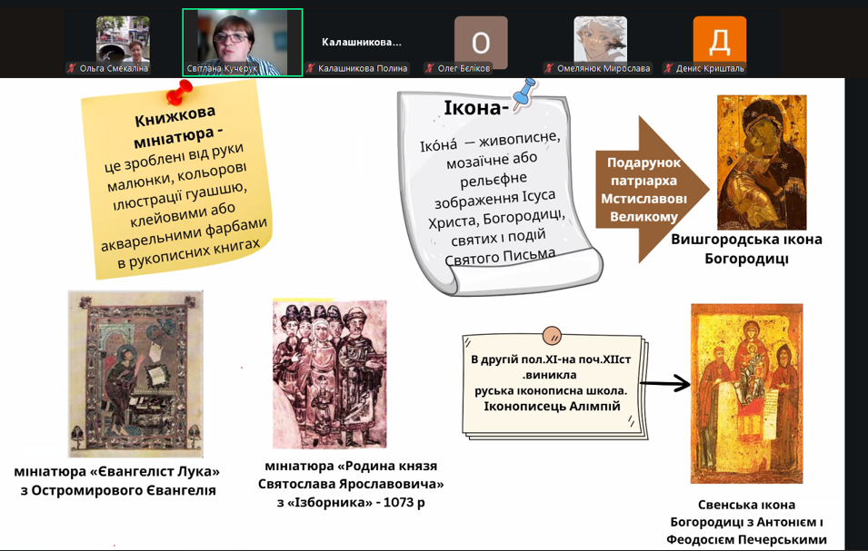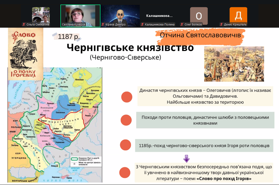 Учні закінчили ознайомлення з темою «Русь -Україна (Київська держава)». Під час консультацій на високому професійному рівні, креативно , з використанням інтерактивних технологій, Катерина Володимирівна Аркуша (МЛ № 8, 2 заняття) та Світлана Іванівна Кучерук (МЛ АДТ, 3 заняття) занурили учасників в глибини історії середньовічної України.