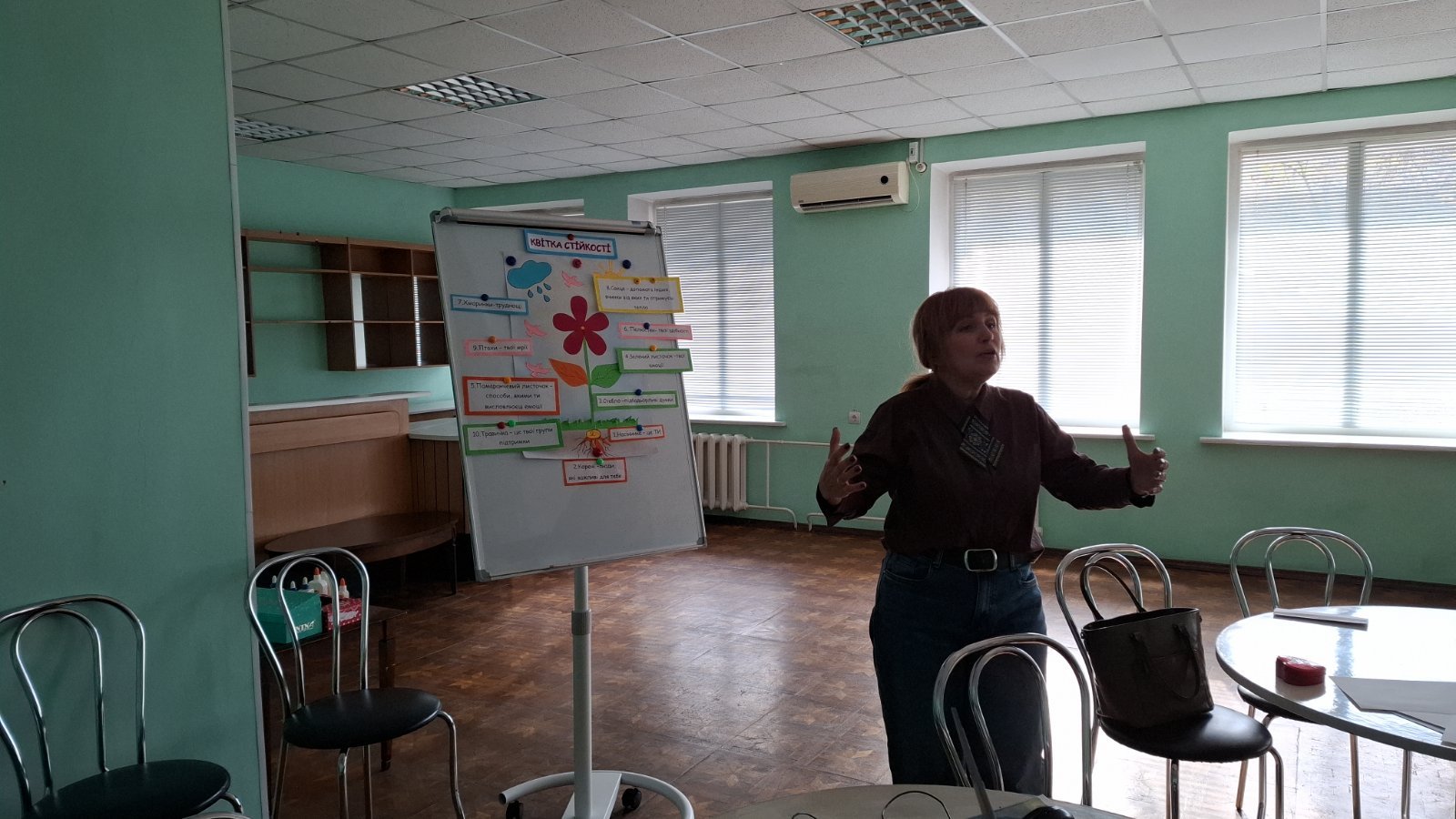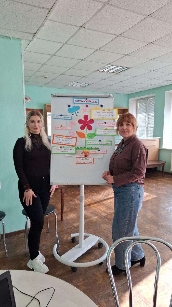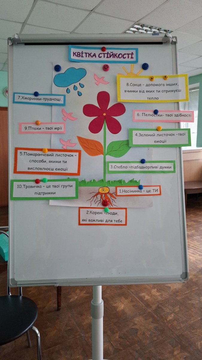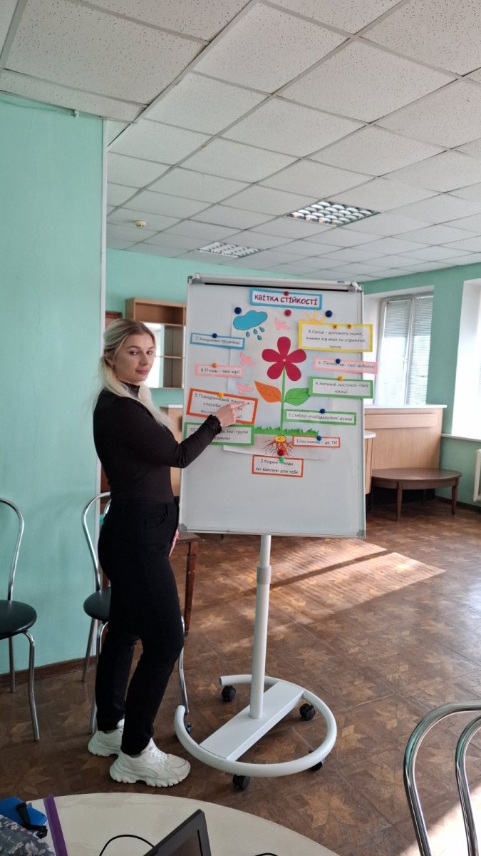 Під час заходу учасників ознайомлено з інструментом «Квітка стійкості», надано алгоритм впровадження та рекомендації щодо використання в груповій та індивідуальній роботі; відпрацьовано техніку на практиці.