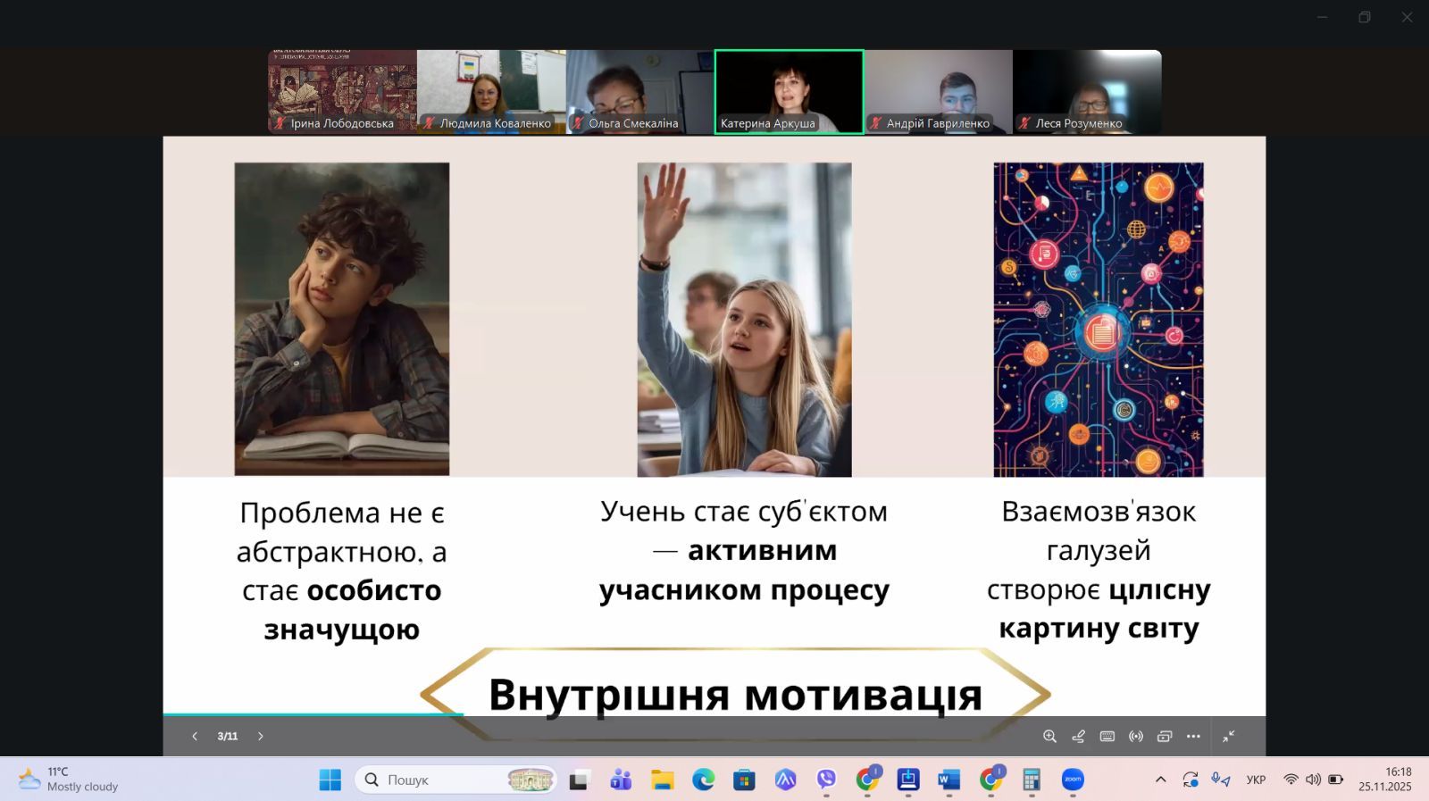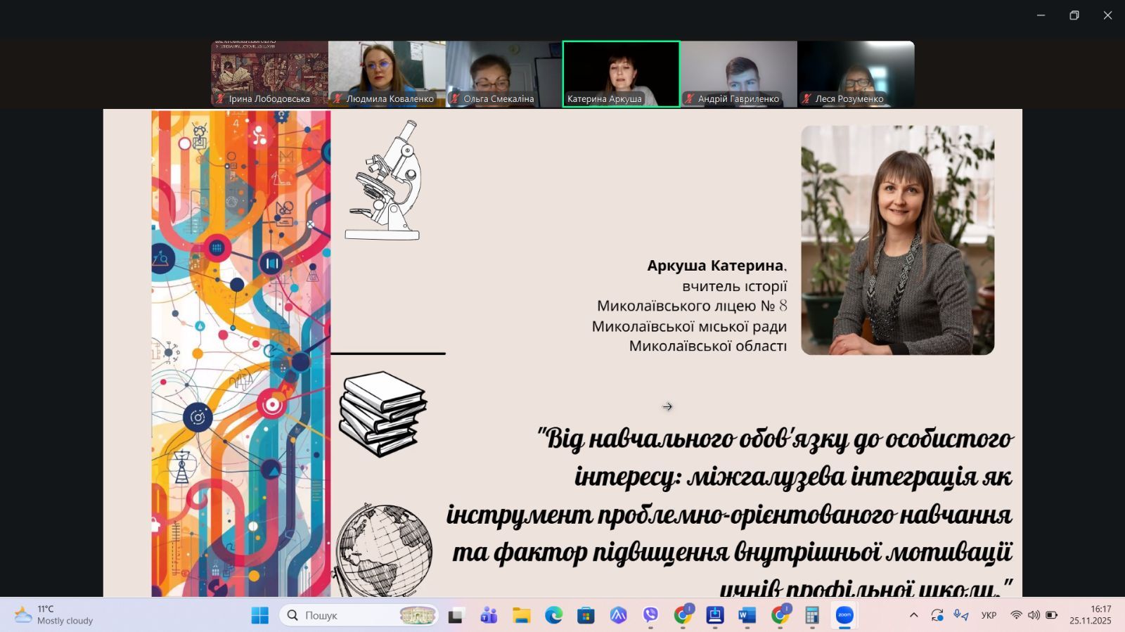 Від навчального обов’язку до особистого інтересу: міжгалузева інтеграція як інструмент проблемно-орієнтованого навчання та фактор підвищення внутрішньої мотивації учнів профільної школи.