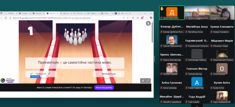 Цього разу спікером стала Антоніна Станіславівна Ковенєва, учитель української мови та літератури вищої категорії, учитель-методист Миколаївського ліцею імені Олега Ольжича. Педагог запропонувала учням інший погляд на звичну тему: розглянула прикметник як засіб точного й виразного мовлення, пояснила часті помилки у тестах та показала, як правильно працювати з контекстними завданнями.