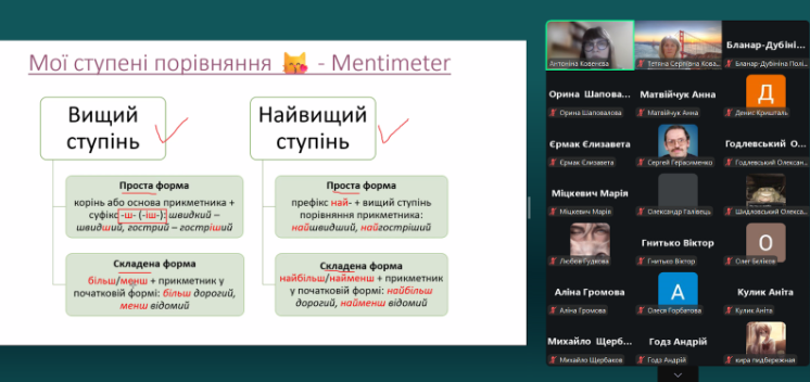 27 листопада 2025 року для учнів 11-х класів відбулося онлайн-заняття з української мови, присвячене темі «Прикметник». Захід проходив у межах серії консультацій із підготовки до НМТ-2026, які традиційно організовує Центр професійного розвитку педагогічних працівників.