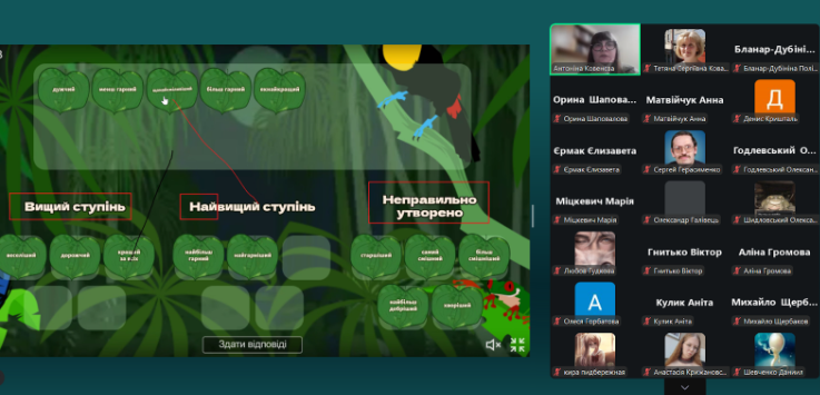 Особливий інтерес викликали інтерактивні вправи. Учні мали можливість попрактикуватися у доборі форм та розв’язанні цікавих завдань, подібних до тих, що можуть трапитися на НМТ.