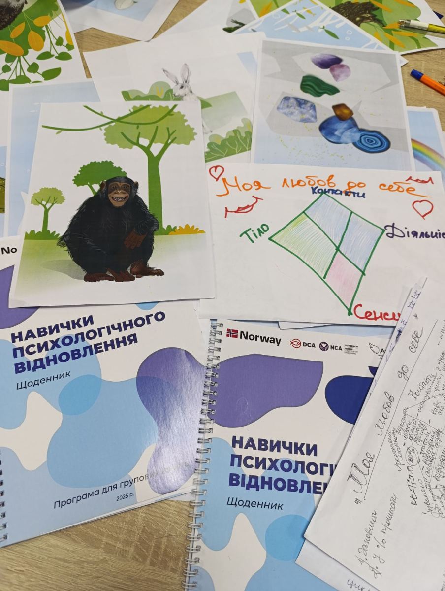 Сьогодні відбулася друга групова зустріч «Моя любов до себе». Психологиня БФ «Янголи Спасіння» Т. Соколик ознайомила учасників з прийомами та техніками піклування про себе, своє ментальне здоров’я; опрацювали практичні вправи з використанням ресурсних метафоричних карток щодо стабілізації емоційного стану, психологічного відновлення тощо.