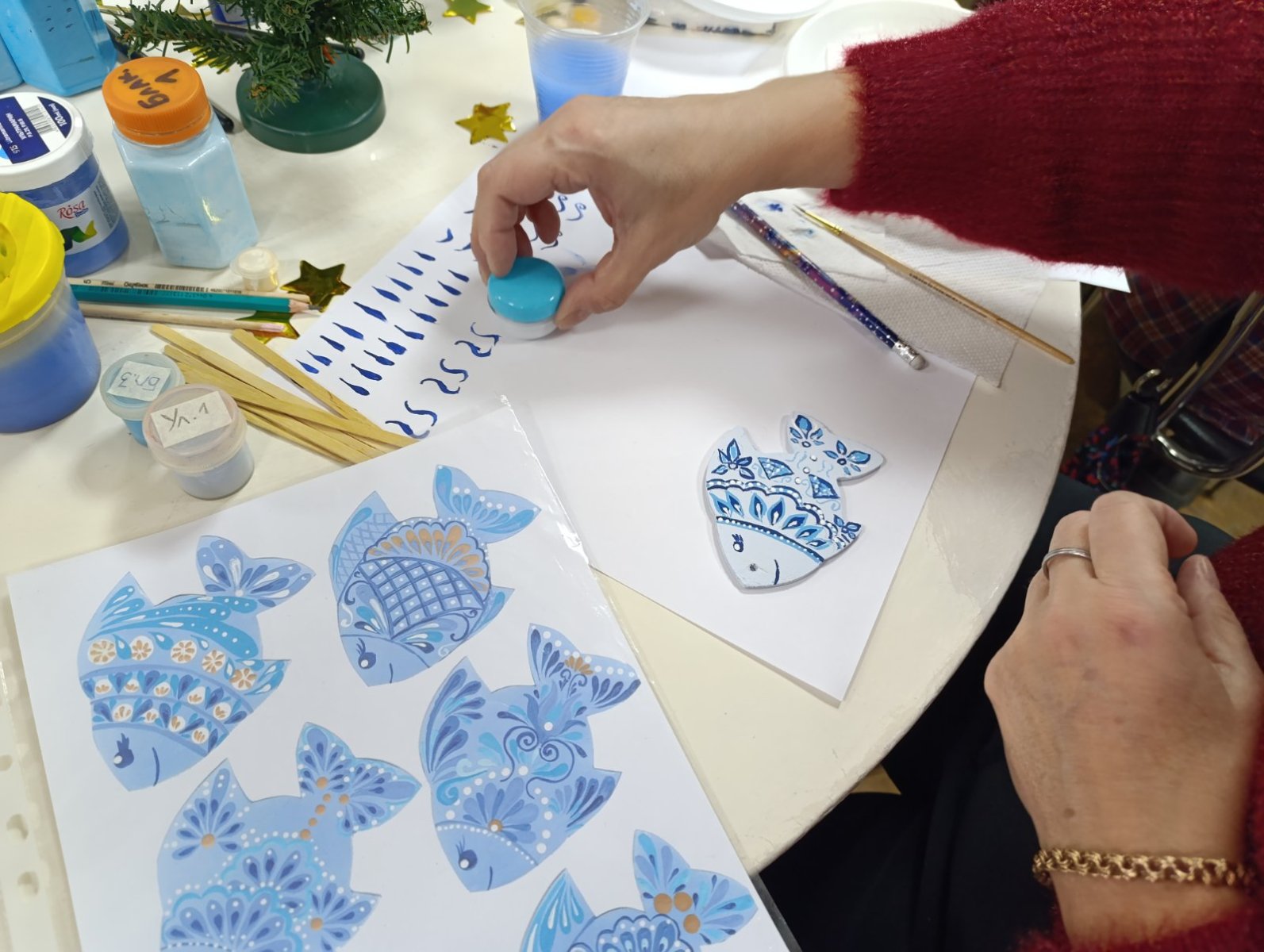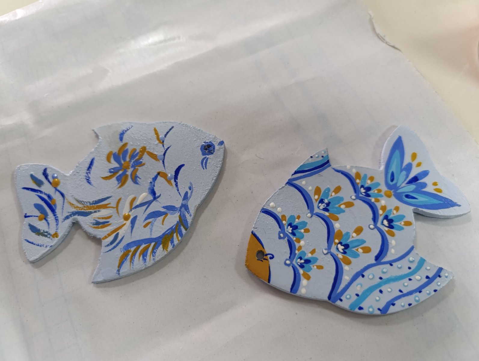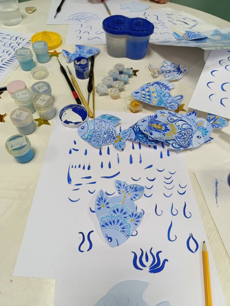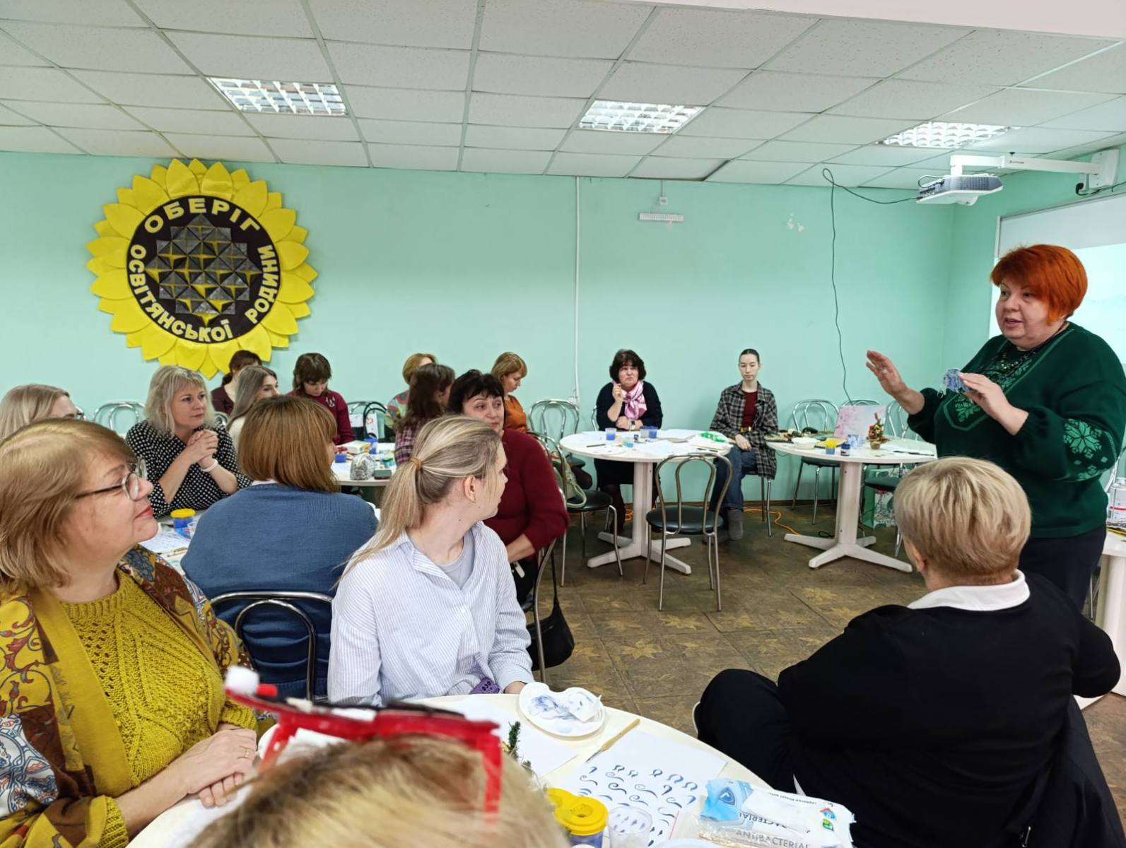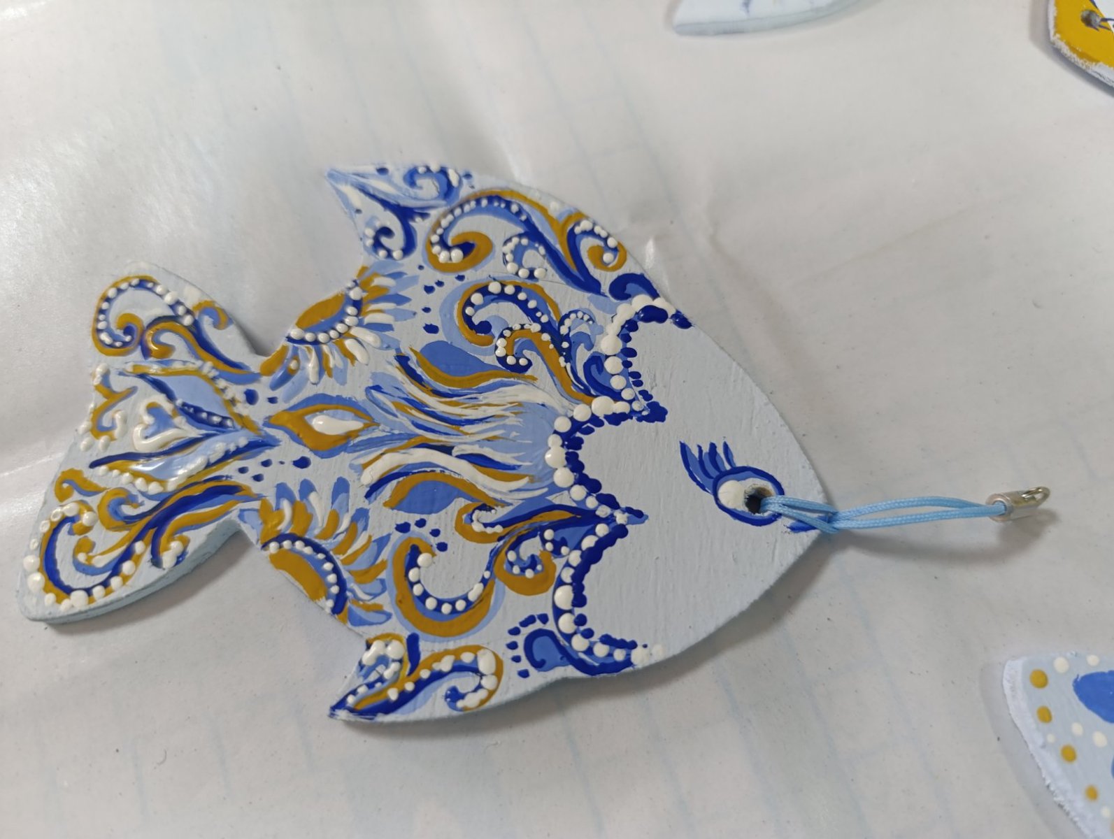 В рамках психологічного практикуму «Ресурсні пігулки. Як зберегти психоемоційне здоров’я педагога» організовано розвантажувальну арт-майстерню «Створення оберегу з елементами таврійського розпису». Психологиня С. Арюпіна ознайомила присутніх з елементами таврійського розпису, особливостями й основним техніками, надала рекомендації по алгоритму створення оберега. Учасники заходу (ЗДО № 5, 20, 49, 118, 127, 144; ЗЗСО №11, 31, 34, 35, 41, 44, 50, 51, 55) в теплій дружній атмосфері обговорювали, вчилися малювати елементи та створювати свій оберіг «Рибку мрійку», мали можливість відчути справжню магію через мистецтво. Всі старалися! Обереги вийшли такі різні, але кожен по своєму красивий, яскравий та унікальний!