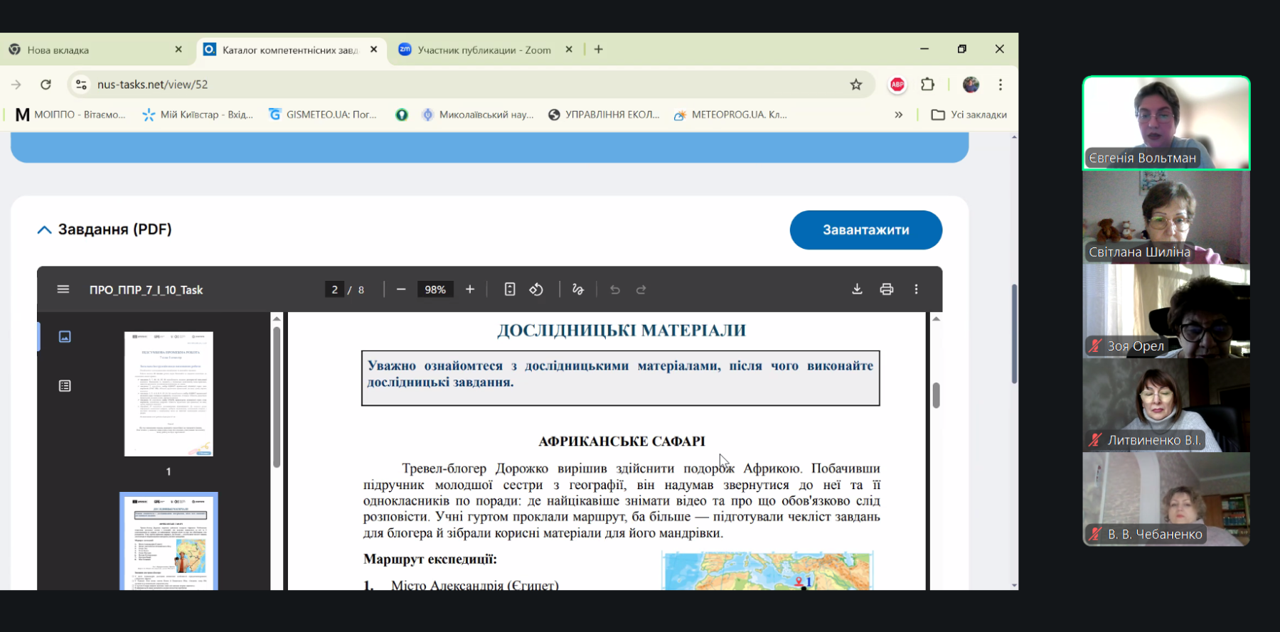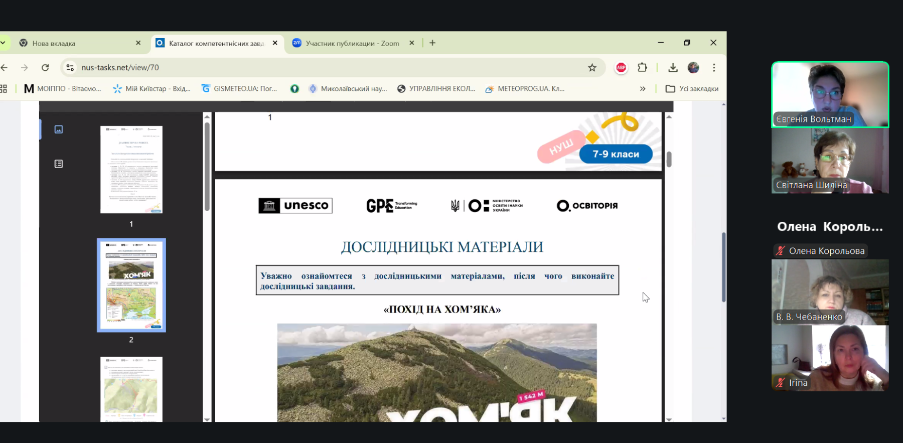 Консультант Шиліна С.Л. розповіла, що платформу створено у межах заходів ЮНЕСКО з підтримки професійного розвитку вчителів в Україні, за фінансової підтримки Global Partnership for Education (GPE), громадською спілкою «Освіторія» у співпраці з Міністерством освіти і науки України. До її складу входять діагностувальні, проміжні та підсумкові контрольні роботи, структуровані за семестрами, що дає змогу системно планувати контроль та оцінювання навчальних досягнень учнів упродовж навчального року.