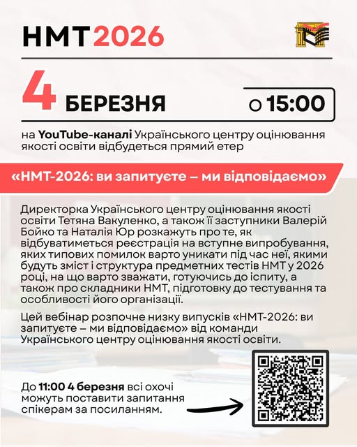 - випускники й випускниці поточного року мають підготувати копію довідки з місця навчання, яка підтверджує, що особа завершує здобуття повної загальної середньої освіти у 2026 році. Довідка має відповідати встановленому зразку, який можна завантажити за посиланням.