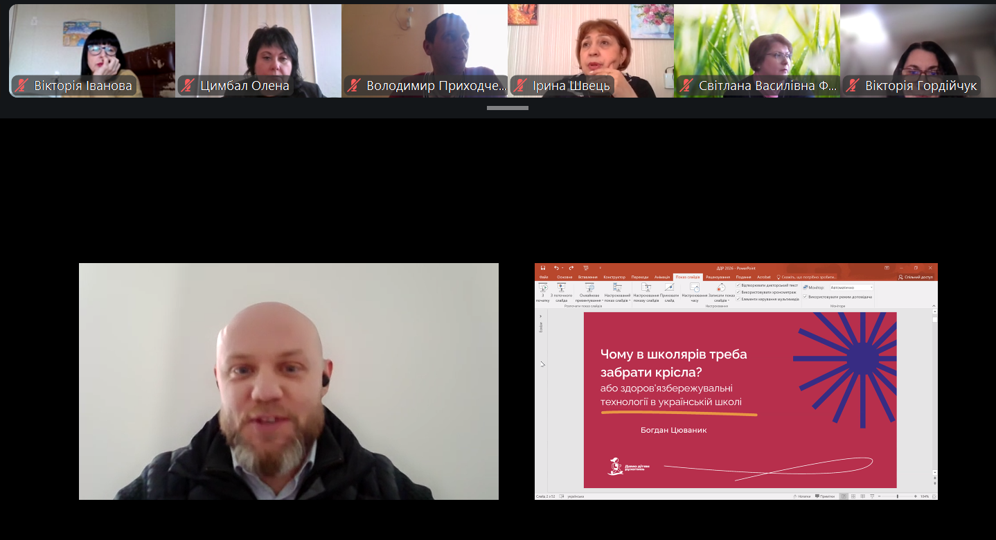 Активною стала комунікація з Циванюком Богданом, представником національного громадського руху в Україні щодо реалізації проєкту «Дамо дітям рухатися!» за підтримки ЗМІН Фундації, спрямованим на створення проактивного шкільного середовища задля поширення нових світових освітніх практик у системі навчання та розвитку дітей. Ознайомлено з результатами дослідження щодо впливу «парт-конторок» на здоров’я учнів з метою протидії шкільній гіподинамії, запровадження методики навчання із динамічною зміною поз учнів завдяки використанню крім звичайних парт, високих столів для навчання стоячи.