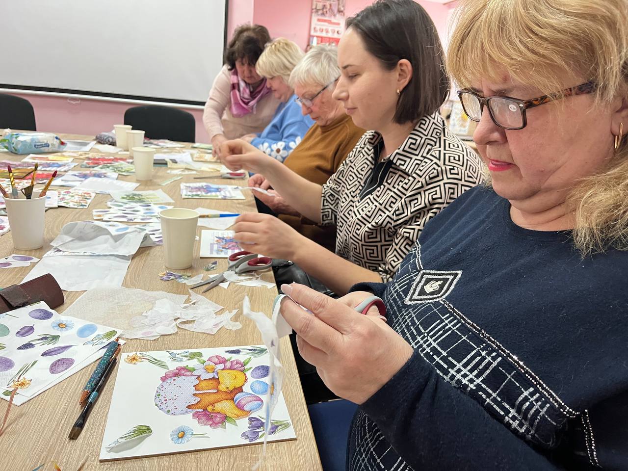 Зустріч відбулася в рамках проєкту з психологічної підтримки педагогів  «В теплих обіймах». За допомогою техніки декупажу учасники мали можливість реалізувати свої творчі ідеї, своїми руками  зробити унікальні вироби з різними сюжетами.